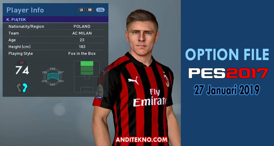Option File PES 2017 for PTE Patch 6.5.3 Terbaru 26 Januari 2019 - PES 2017 merupakan salah satu game bola favorit yang dapat dijalankan melalui laptop ataupun konsol playstation. Di setiap musimnya sudah pasti akan terjadi transfer pemain dari klub-klub bola. Maka dari itu, tentu saja kita tidak mau ketinggalan dengan update transfer tersebut kan. Nah, disini saya akan membagikan option file PES 2017 terbaru per tanggal diterbitkannya postingan ini, 26 Januari 2019.