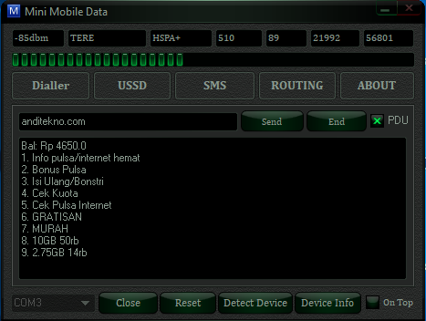 Kurang lebih begitulah cara saya selama ini dalam mengecek pulsa di modem huawei stc yang tidak support fitur ussd dial pada software bawaan modemnya (mobile partner). Tentu saja, cara ini bisa anda gunakan di modem dengan software bawaan lain yang tidak support ussd dial. Karena mmd sangat-sangat support di berbagai jenis modem. Maka dari itu, pengguna modem usb colok wajib memiliki aplikasi pc bermanfaat ini.