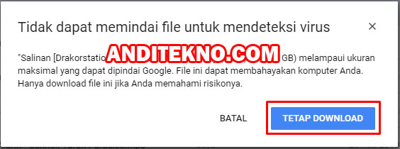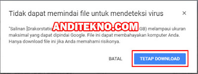 - Jika muncul kalimat "tidak dapat memindai file ini dari virus" pilih "Tetap Download"