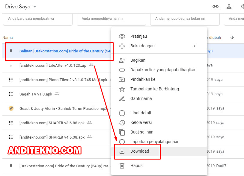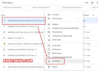- Klik kanan pada file salinan tersebut dan kemudian pilih "Download".