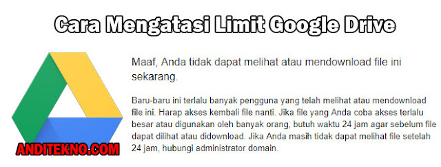 Demikianlah pos Cara Mengatasi Limit Google Drive Lengkap dengan Gambar Terbaru 2019 di blog AndiTekno. Sekian, dan terima kasih.