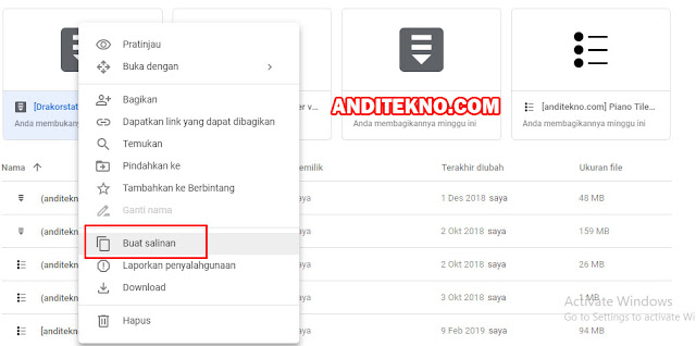 - Klik kanan pada file tersebut dan pilih "Buat Salinan".