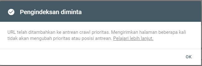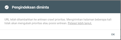 - Kemudian klik tombol "Minta Pengideksan". Kebetulan artikel yang saya submit disini adalah artikel yang telah saya terbitkan lama dan telah saya edit bersama dengan dibuatnya artikel ini.