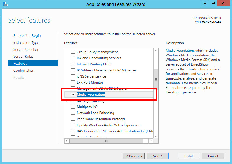 - Pilih menu "Add Roles and Features" kemudian sobat klik saja Next > Next sampai ke Tab Features, scroll kebawah cari dan ceklis "Media Foundation".