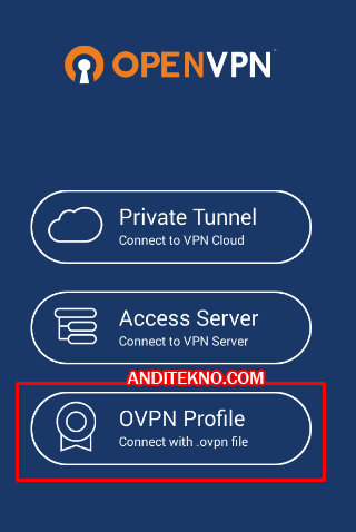 - Selanjutnya buka aplikasi openvpn connectnya dan pilih "OVPN Profile".
